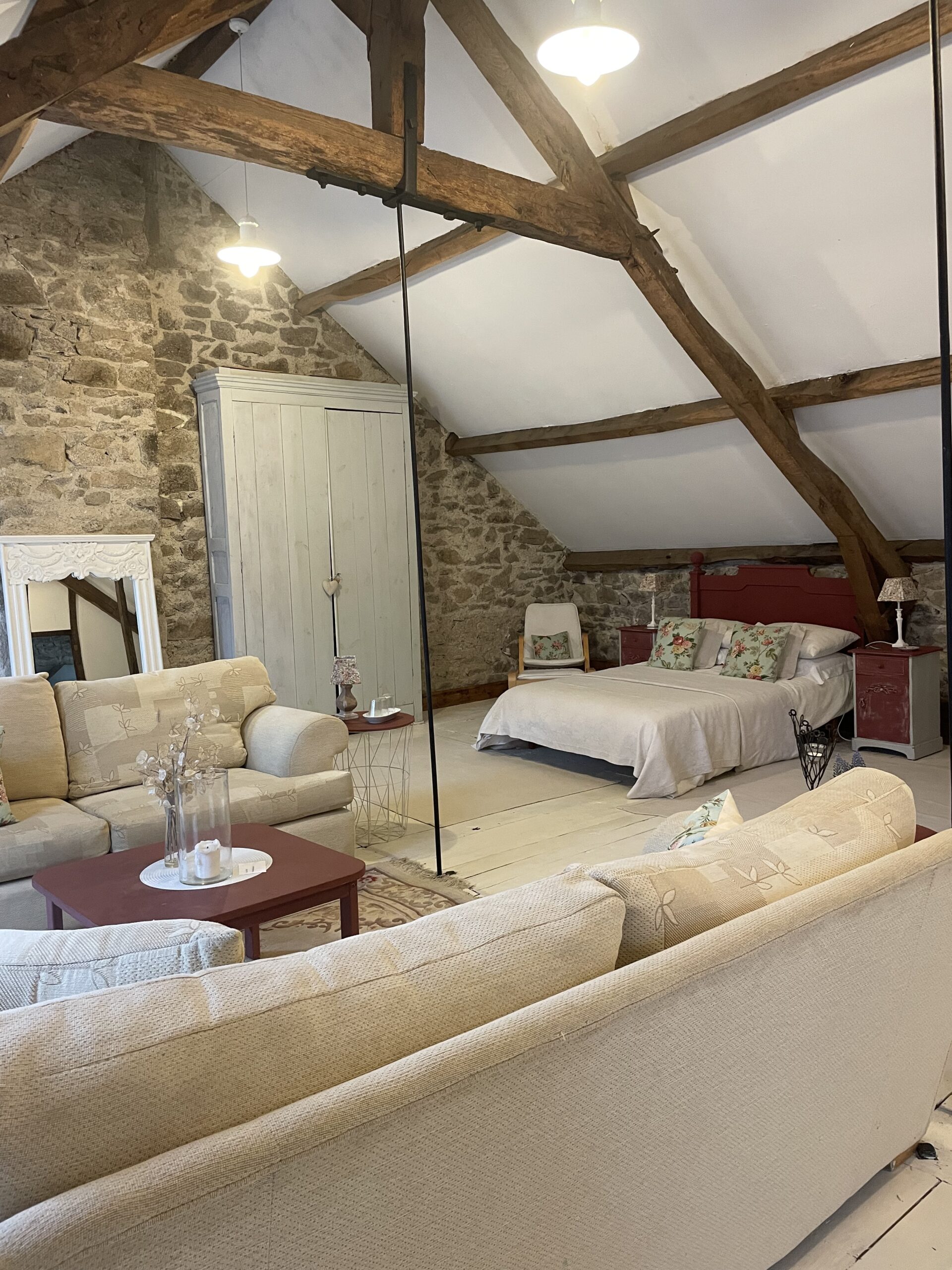 Sur le troisième etage des canapés creates une space pour relaxer dans cette grande chambre pour deux ou trois personnes (suppl 15€ par nuit)